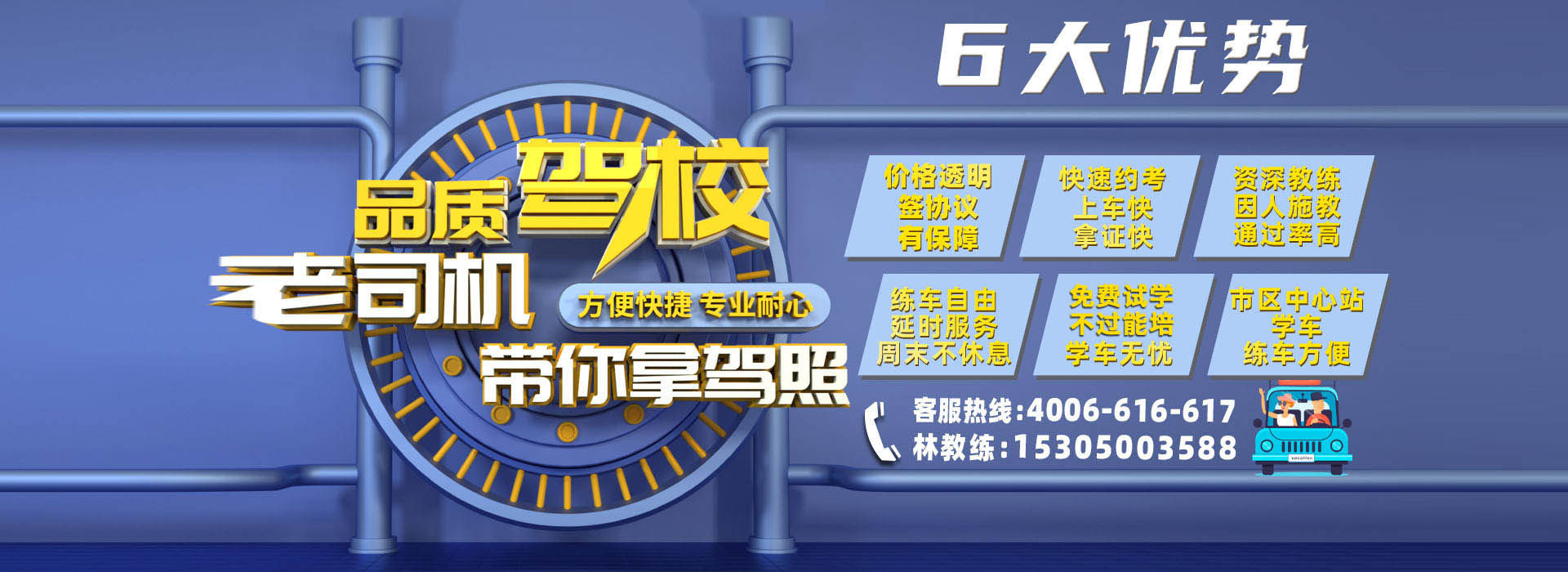 泉州市行車(chē)人汽車(chē)服務(wù)有限公司中營(yíng)駕校成立于2005年1月12日,是泉州市*批通過(guò)福建省交通廳驗(yàn)收合格的駕駛培訓(xùn)學(xué)校。經(jīng)過(guò)多年的發(fā)展公司現(xiàn)擁有教學(xué)車(chē)輛數(shù)十部,培養(yǎng)了一支經(jīng)驗(yàn)豐富、技術(shù)過(guò)硬、紀(jì)律嚴(yán)明,經(jīng)過(guò)正規(guī)培訓(xùn)并獲得了準(zhǔn)教證的教練員隊(duì)伍,公司辦學(xué)理念新穎,在“微笑服務(wù)”的同時(shí)嚴(yán)把技術(shù)大關(guān),堅(jiān)持“用心服務(wù),精心施教”的原則,實(shí)行報(bào)名、培訓(xùn)、考試、(新手陪駕,汽車(chē)年檢,車(chē)輛過(guò)戶(hù),二手車(chē)咨詢(xún),二手車(chē)評(píng)估,驗(yàn)資報(bào)告,補(bǔ)證換證,保險(xiǎn)代理)拿證等其他服務(wù)項(xiàng)目...